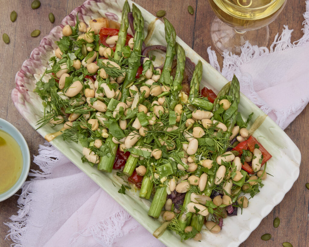 Herby Lemon Bean Salad With Asparagus & Pumpkin Seeds